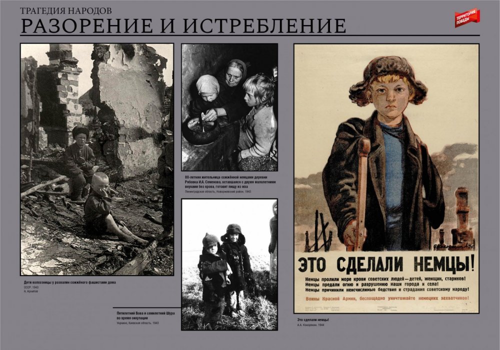 Выставку «Трагедия народов» нам предоставил наш партнер — Музей Победы на Поклонной горе в рамках Международного проекта «Территория Победы», который объединяет 250 музеев и военно-исторических центров России и зарубежных стран.