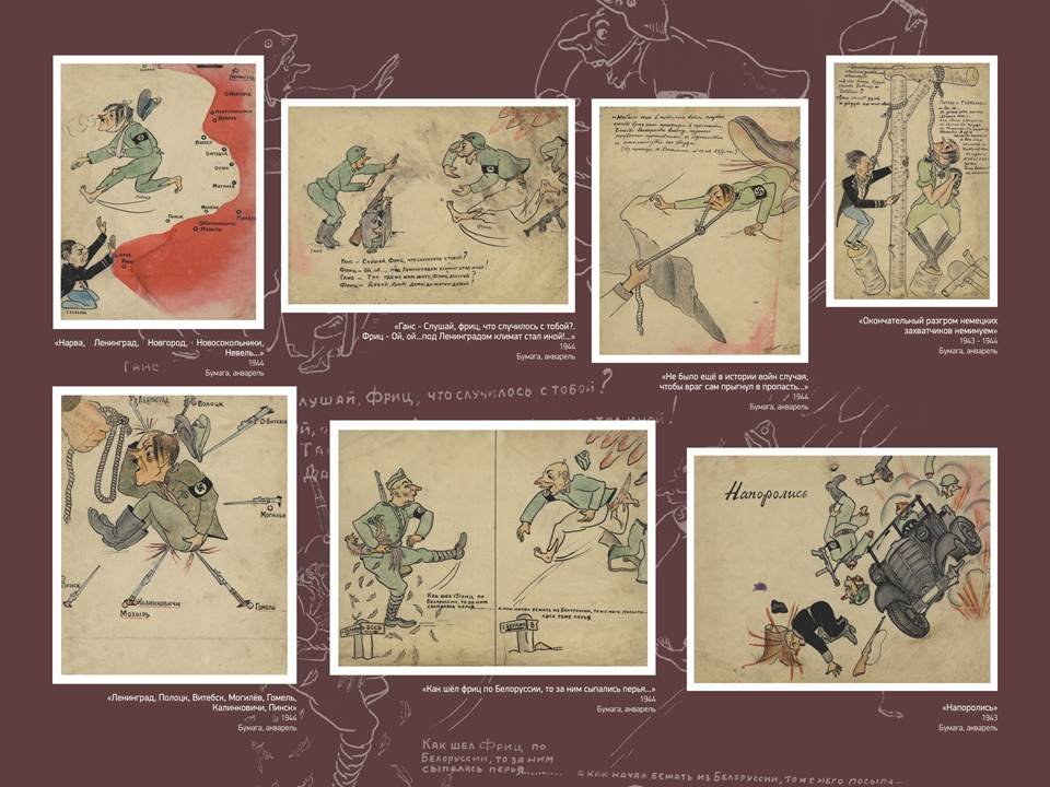 Мы знакомим посетителей нашего сайта с материалами новой выставки – «Оружие сатиры и юмора в руках народных мстителей». Выставка предоставлена нашим партнером – Московским музеем Победы на Поклонной горе, который объединил 250 музеев и военно-исторических центров России и зарубежных стран в рамках Международного проекта «Территория Победы».