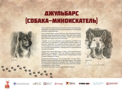 Выставка рассказывает братьях наших меньших – собаках, которые внесли большой вклад в общенародное дело Победы над нацистской Германией. Более 60 000 мохнатых героев прошли боевой путь от Москвы до Берлина. Во время войны части и подразделения Красной Армии впервые в военной истории массово, разнообразно и эффективно применяли служебных собак. В центральной школе военного собаководства животных готовили по 11 видам служб – связи, розыскной, караульной, сторожевой, противотанковой, санитарной, диверсионной, для химической разведки, авиасигнальной, ездовой и минно-розыскной.